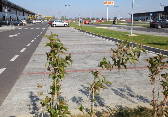 Trgovački centri su izgrađeni do potpune funkcionalnosti sa svim građevinsko – obrtničko – instalaterskim radovima, te uređenjem okoliša. Ugrađeno je ukupno 30.000m3 betona, 1.085t armature, 528 kom AB elemenata, 7.400m2 stropnih ploča, 6.400m2 fasadnih panela, te je izvedeno 26.500m3 zemljanog nasipa.